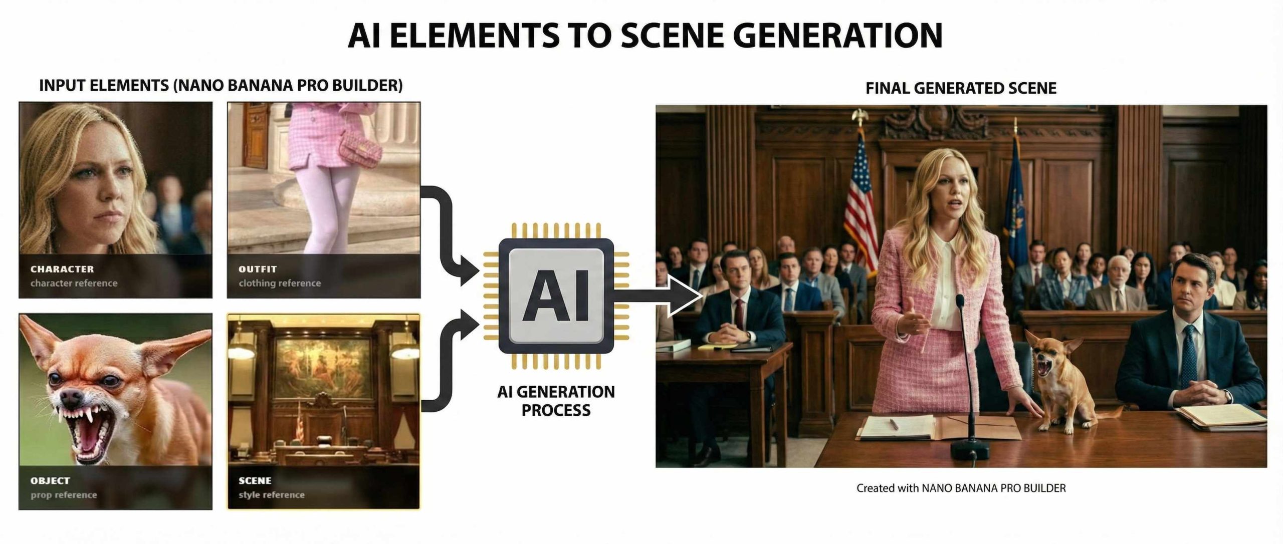 - Input a Character, Outfit, Object and Setting to get consistent characters across different scenes and locations.